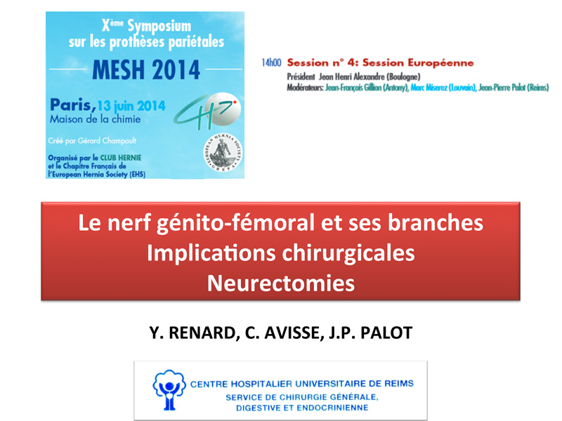 Le nerf génito-fémoral et ses branches Implications chirurgicales Neurectomies. Y. Renard, C. Avisse, Jean-Pierre Palot (Reims)
